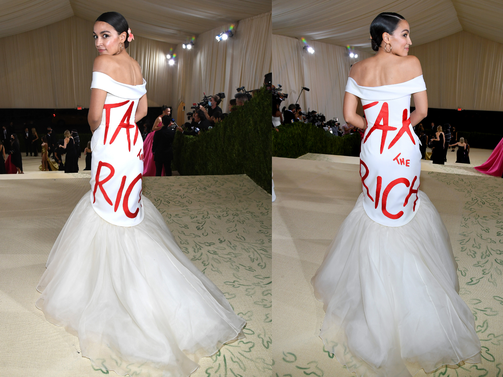 Democratic-Socialist congresswoman Alexandria Ocasio-Cortez wore a gown emblazoned with Tax the Rich to the 2021 Met Gala. Congresswoman Alexandria Ocasio-Cortez D-NY attends the 2021 Met Gala Celebrating In America. It was a bold move given.